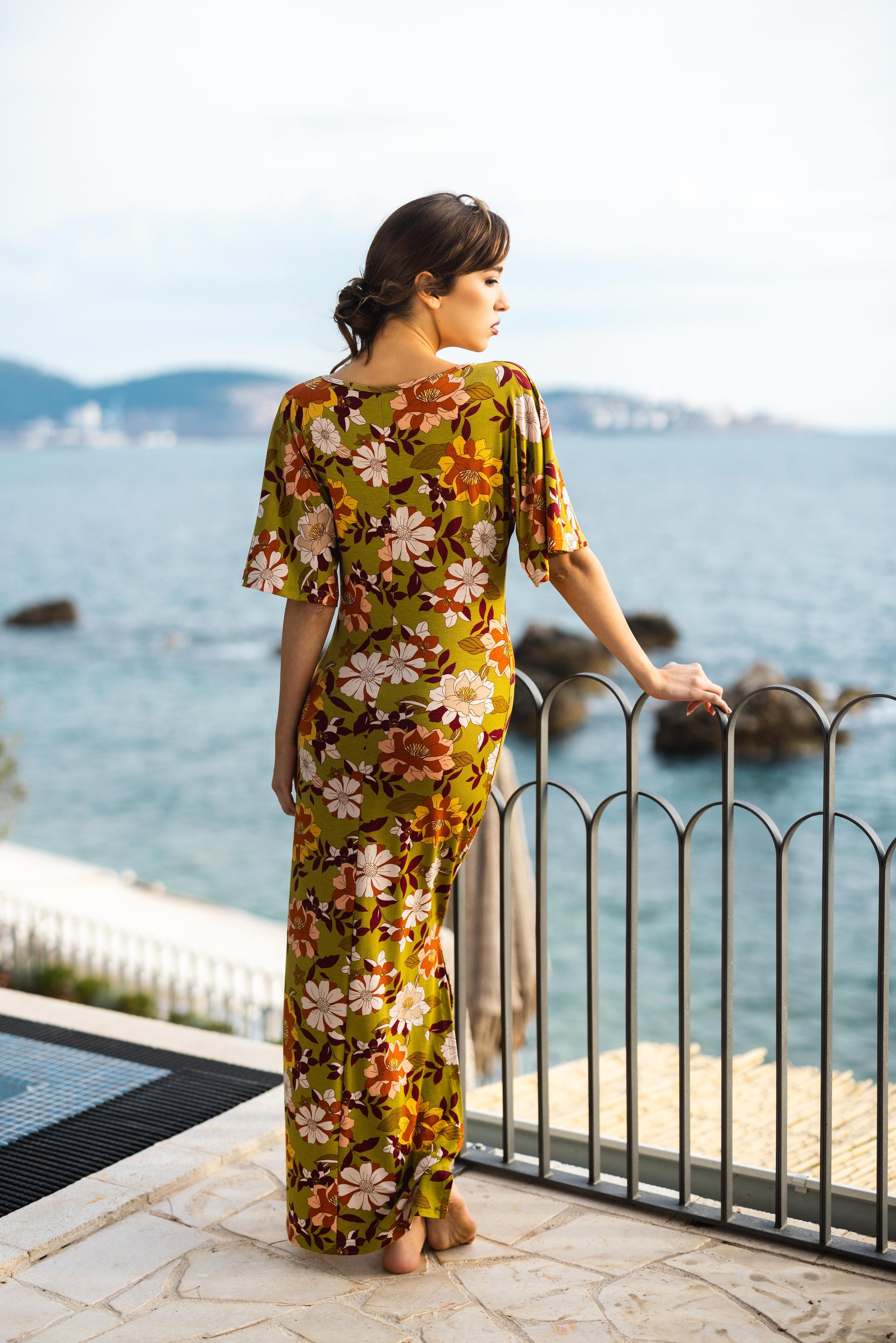 Ova haljina je izbor za žene koje žele spoj elegancije, udobnosti i izraženog stila – savršena za letovanja, gradske šetnje, ručkove u baštama ili večernje susrete na obali.