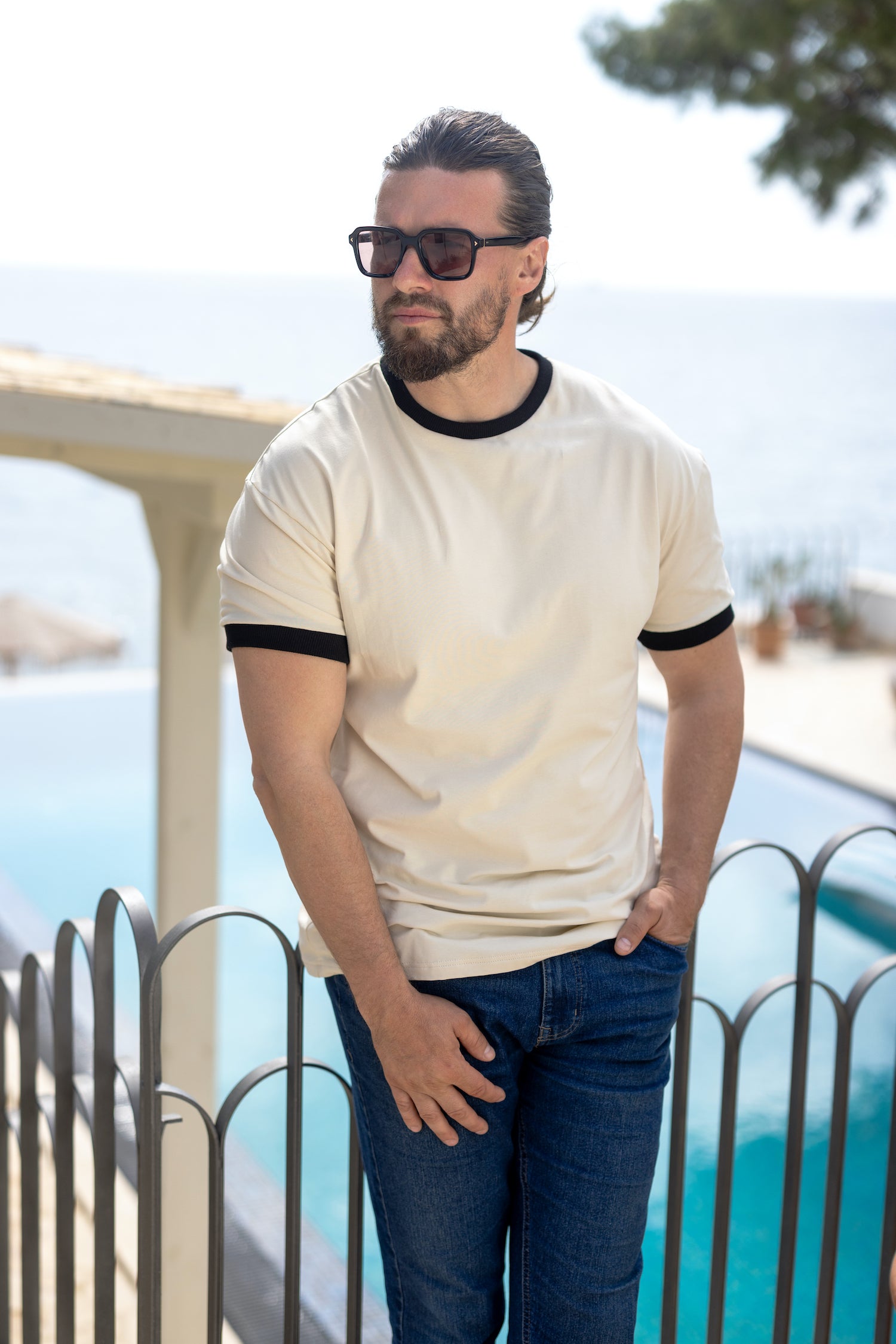 Ravan kroj sa crnim obrubima oko vrata i rukava – dodatna definicija i stil