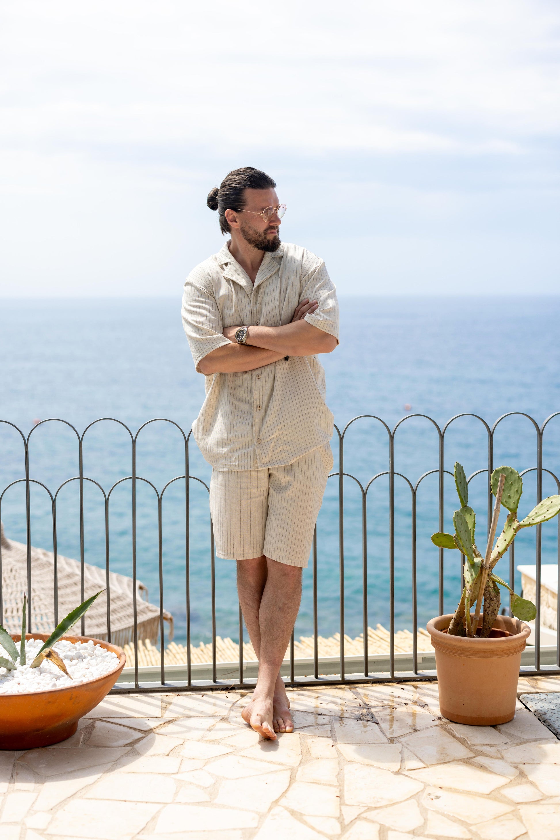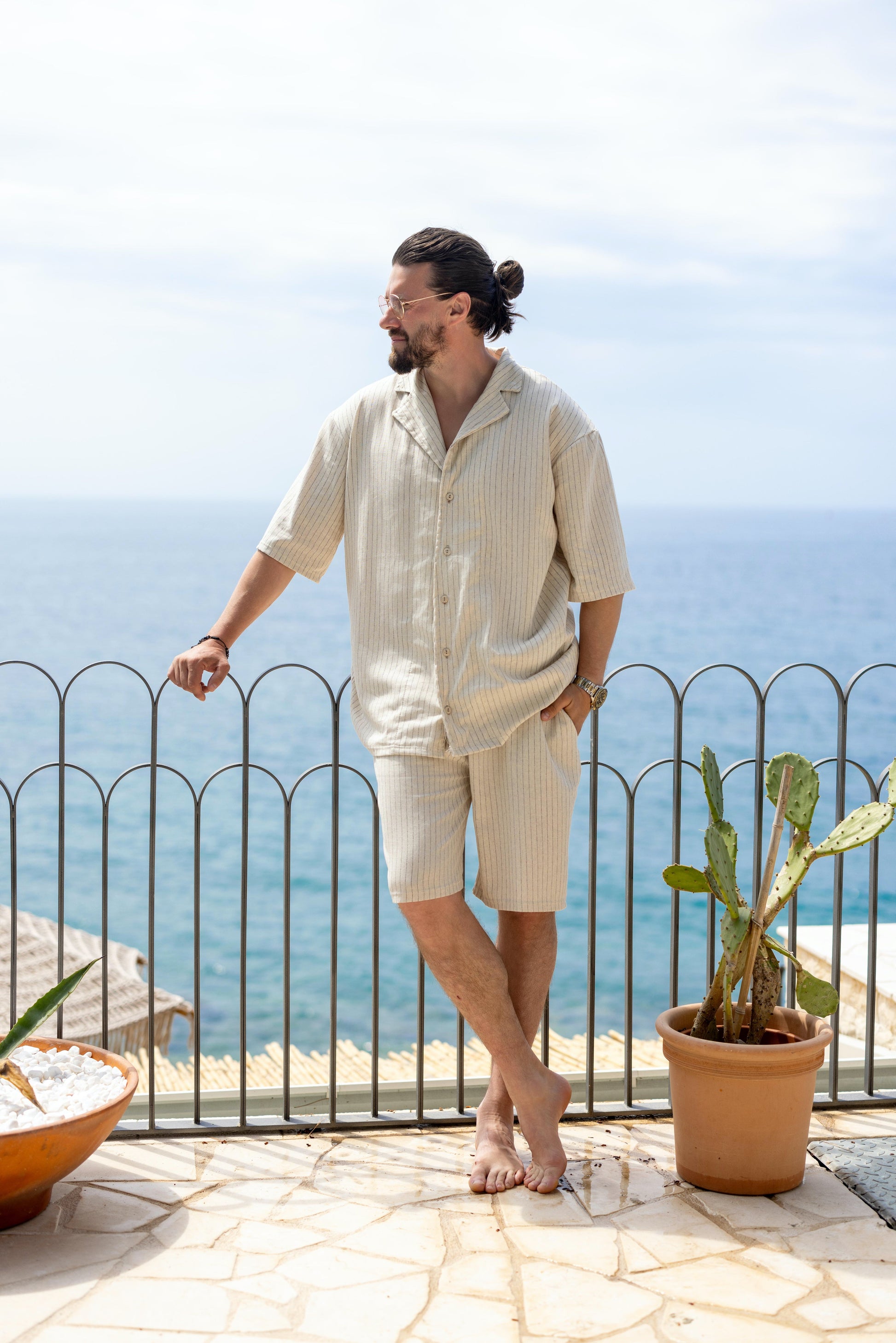 Napravljen od istog laganog i prijatnog materijala kao i košulja – viskoza i lan.