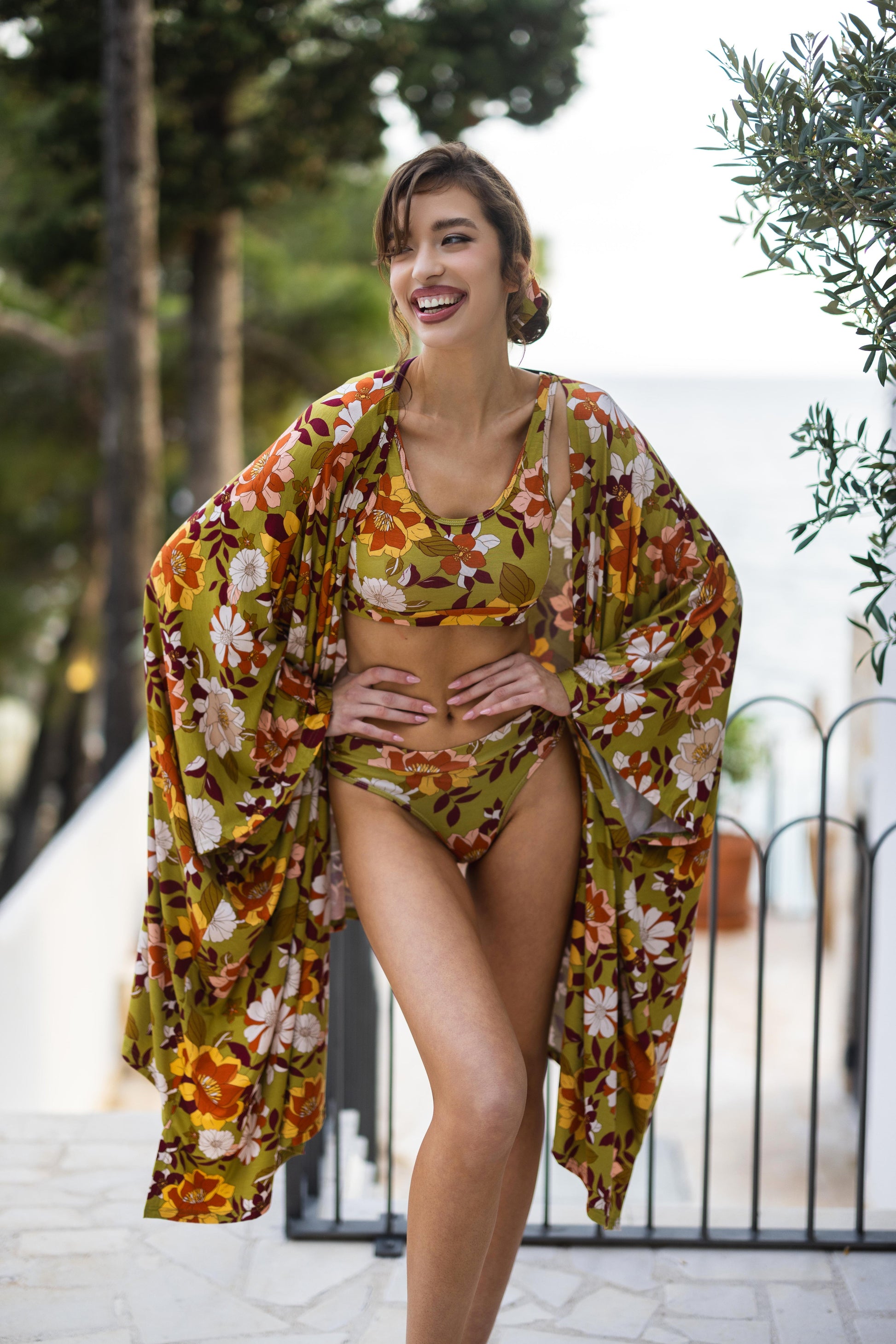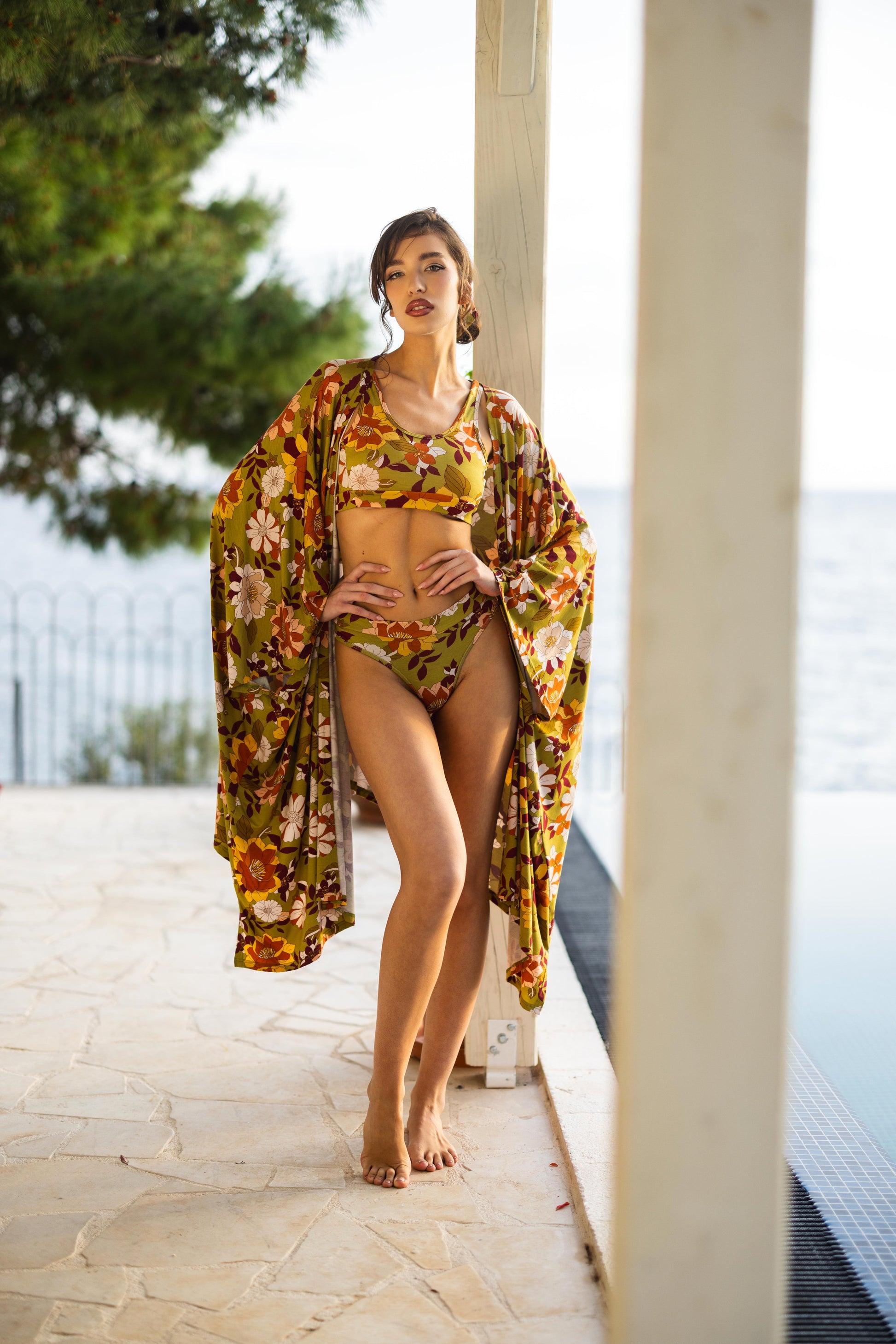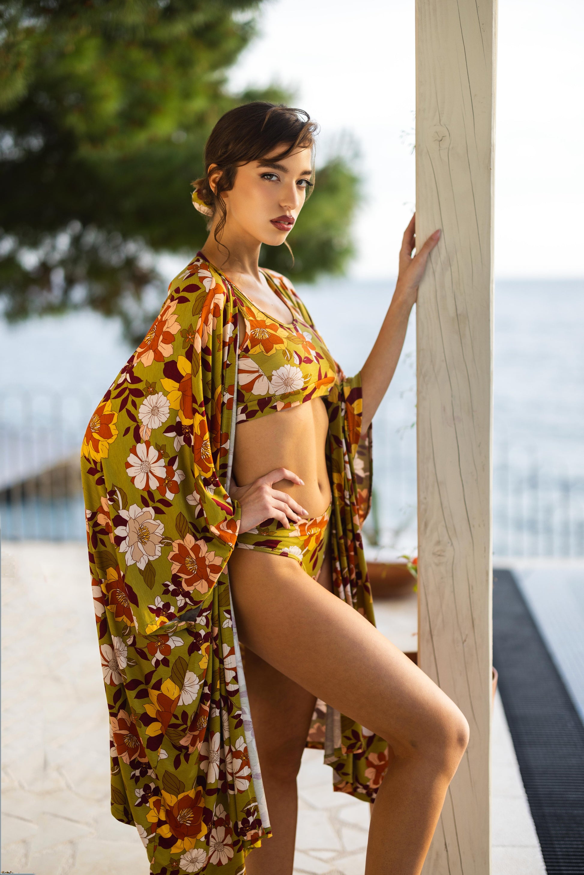 Ovaj prozračni viskozni ogrtač je idealan saveznik za tople dane – bilo da ste na plaži, bazenu ili samo želite da ušuškate letnji outfit u malo boje i stila. Lagani materijal prijatno hladi, a raskošan cvetni print donosi osveženje i vedrinu.